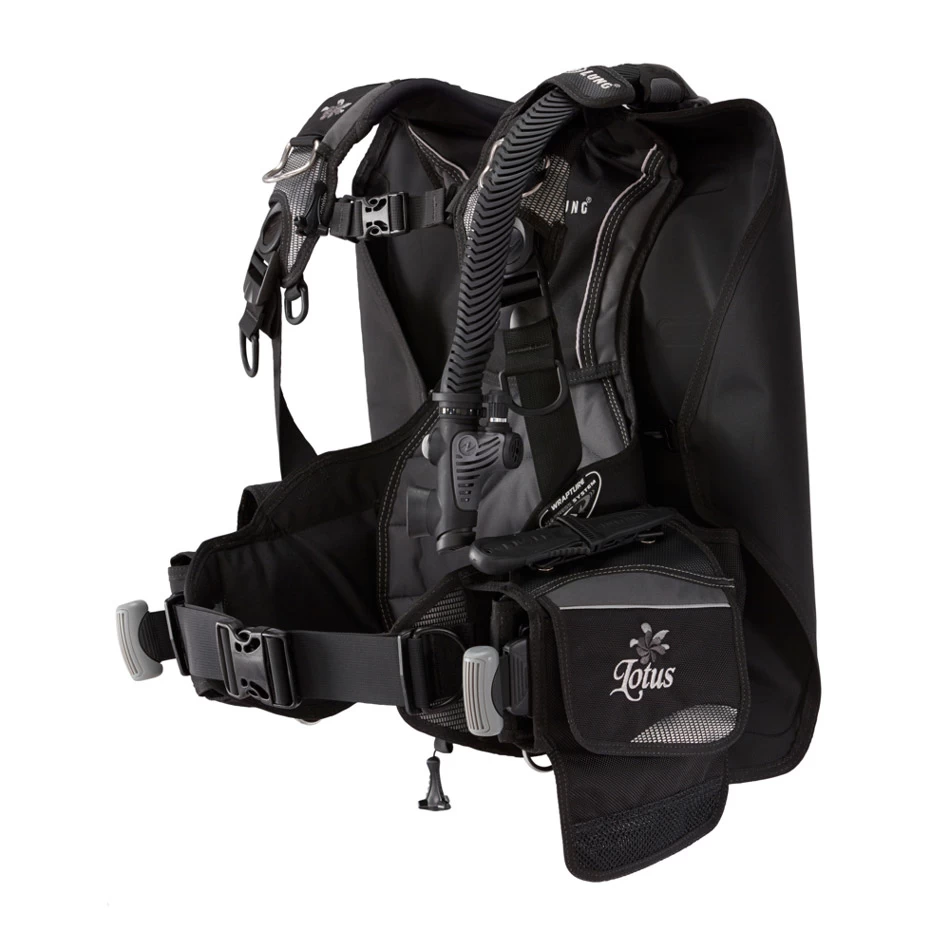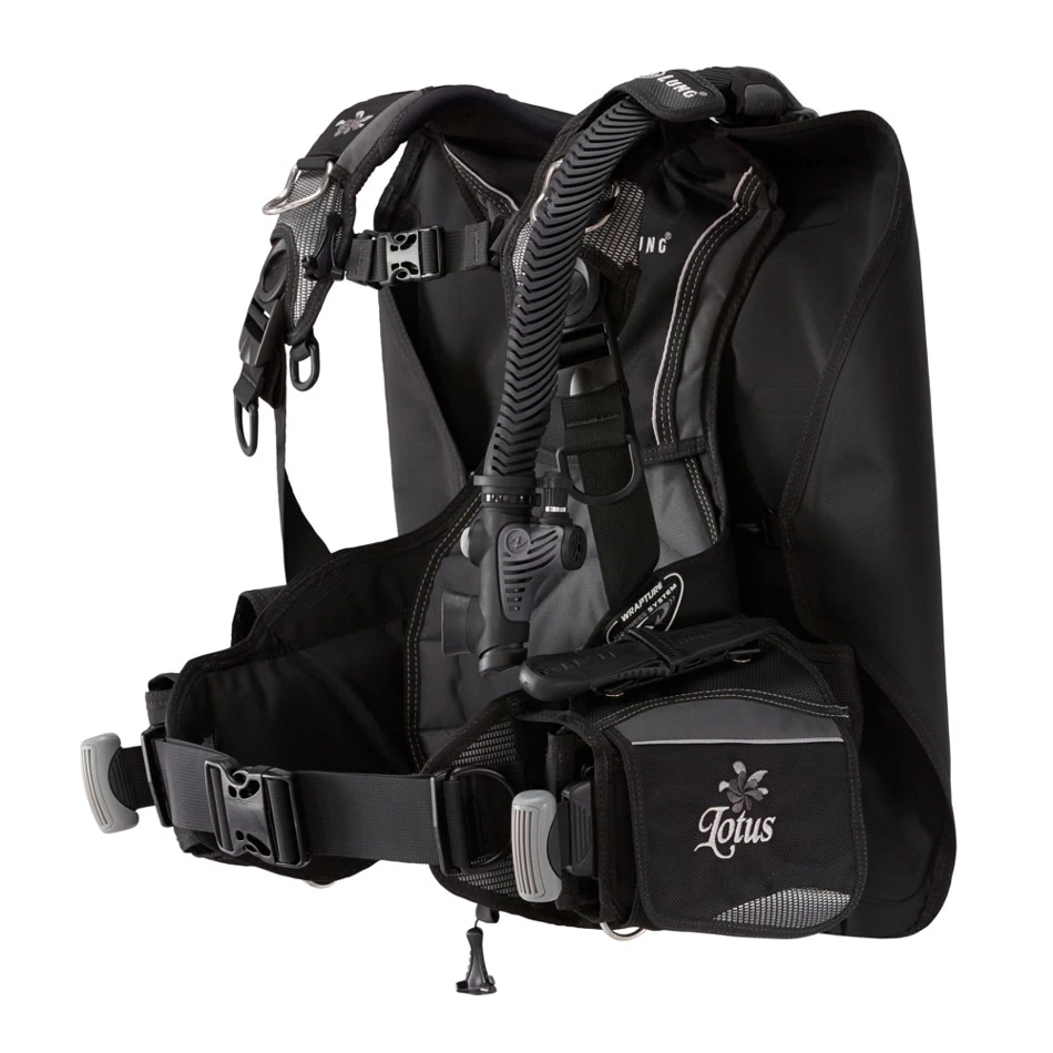 Le Lotus est un gilet de flottabilité dorsale, spécialement conçu pour les femmes qui intègre notre système de harnais Wrapture.