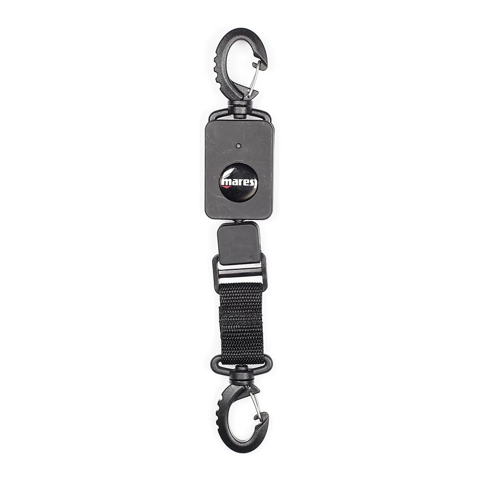 Rétracteur Mares avec un câble inox de 60 cm, munie de 2 mousquetons renforcés. Parfait pour sécuriser vos accessssoires et instruements.
