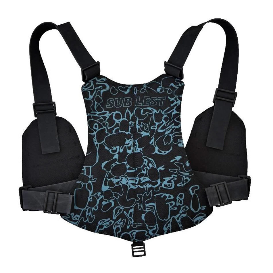 Gilet baudrier 3 piĂšces pourvu de 10 poches vides Ă lester. Convient pour une combinaison sĂšche ou pour la chasse sous-marine. ConfectionnĂ© Ă partir de toile polyester, Ă flottabilitĂ© neutre. Une seule taille, rĂ©glable au niveau des bretelles et de la ceinture. Sangles caoutchouc 3 mm dâĂ©paisseur, rugueuses sur les 2 faces pour ne pas glisser sur la combinaison. La boucle de ceinture est de type US en inox. La piĂšce dorsale peut recevoir une sous-cutale si besoin. Peut contenir jusquâĂ 12 voire 14 kg si lâon Ă©largit les 2 poches basses de la piĂšce arriĂšre pour y loger des plombs de 2 kg plutĂŽt que des 1 kg (il suffit de dĂ©coudre deux lignes de coutures). Les poches acceptent tous les formats de lest du marchĂ© et se referment par de solides rabats Ă velcro. Ce gilet est conçu pour ne pas se dĂ©former sous la charge.